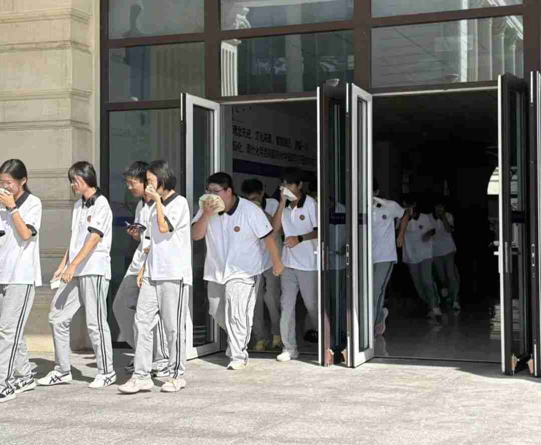 “呜 —— 呜 ——” 上午 9 时30分,急促的应急警报声准时在校园响起,演练正式开始。听到警报后,各班级学生在班主任的引导下,迅速拿出提前准备好的湿毛巾捂住口鼻,弯腰低姿按照预定疏散路线快速向教学楼前侧广场集结。过程中,老师们全程坚守关键岗位,有序疏导人流,提醒学生“注意脚下”“不要拥挤”;同学们则听从指挥、沉着冷静,展现出良好的纪律意识与应急反应能力。从警报响起至全体师生安全抵达集合点,整个疏散过程高效有序,未出现任何意外情况。