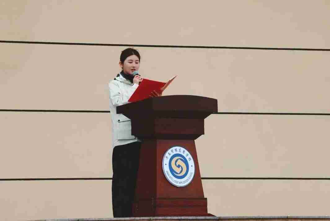 随后,教师代表陈慧青老师以《燃青春之火,谱奋斗之歌》为题发表讲话,陈老师首先结合新学期重新分班的背景,鼓励同学们以开放心态拥抱新集体,开启“再出发”的旅程。她引导大家关注世界局势,从俄乌冲突到中东动荡,强调和平来之不易,要倍加珍惜祖国提供的安宁环境,陈老师还引用习近平总书记2026年新年贺词,号召同学们将个人理想融入国家发展。她向全体同学提出三点希望:立目标、勤学习、守底线,勉励大家在专业上精进、在品德上锤炼,争做德技并修的新时代青年。