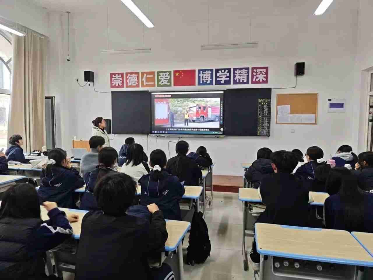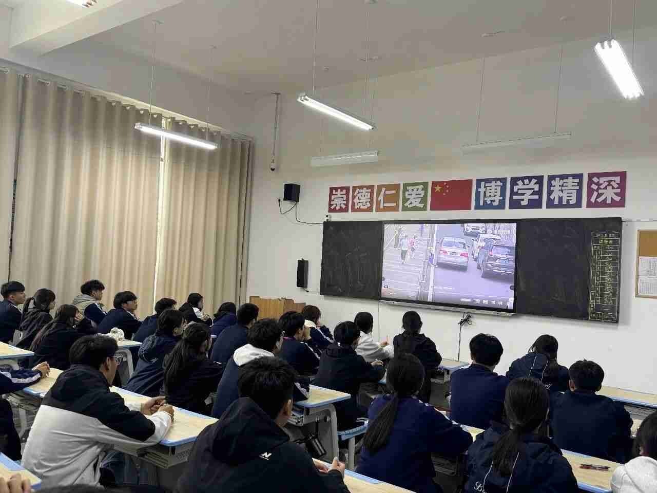 从过马路时的“一停二看三通过”,到火灾逃生时的“低姿弯腰捂口鼻”;从识别校园欺凌的信号到防范电信网络诈骗的技巧,专题片用贴近生活的案例让抽象的安全知识变得具体可感。各班主任们适时暂停播放,结合片中案例与学生展开互动讨论:“如果遇到同学被欺凌,你会怎么做?”“发现火情时,第一时间应该做什么?”同学们踊跃发言,在交流中深化理解,在思考中提升警惕。